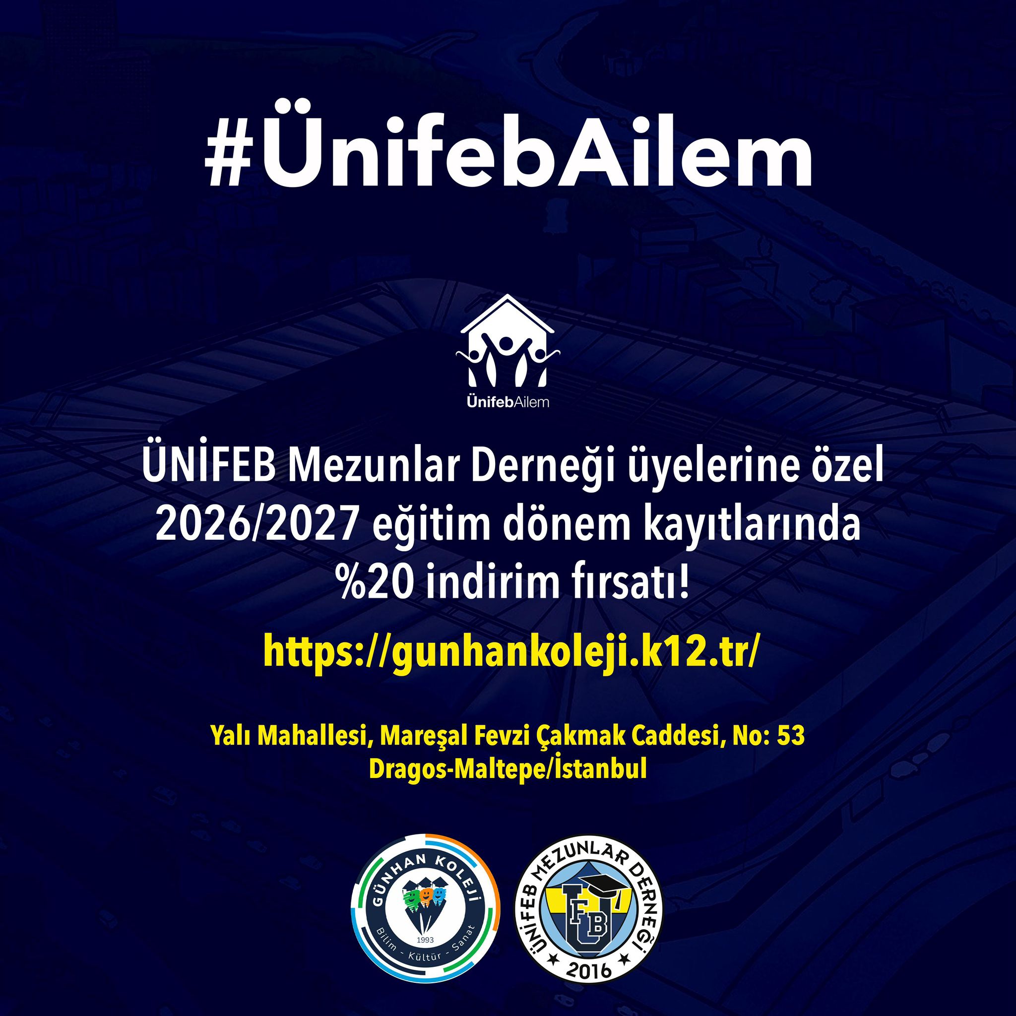 ÜnifebAilem projesi kapsamında çocuklarımızın eğitim hayatına yönelik yeni bir ayrıcalığı duyurmak isteriz. Dernek üyelerimiz, Günhan Koleji 2026/2027 eğitim dönemi kayıtlarında [...]